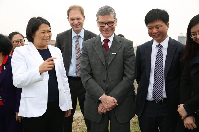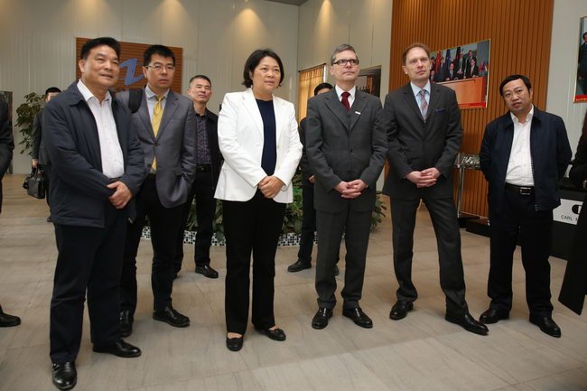 2015年3月3日,德國埃斯林根應用科技大學副校長查耐爾斯基和博克曼一行蒞揭考察中德金屬生態(tài)城及中德雙元應用科技大學選址,共同商討推進合作辦學事宜。市委書記、市人大常委會主任嚴植嬋等陪同活動。