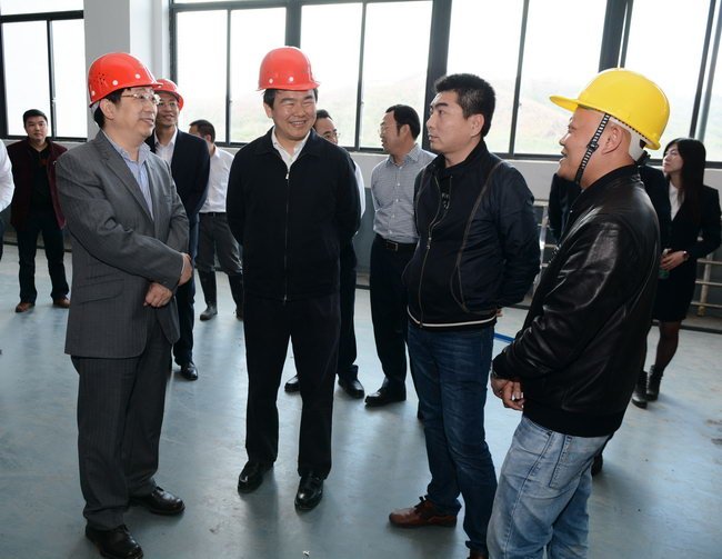 譚炯一行來到表面處理中心廠房,與入園電鍍企業家親切交流